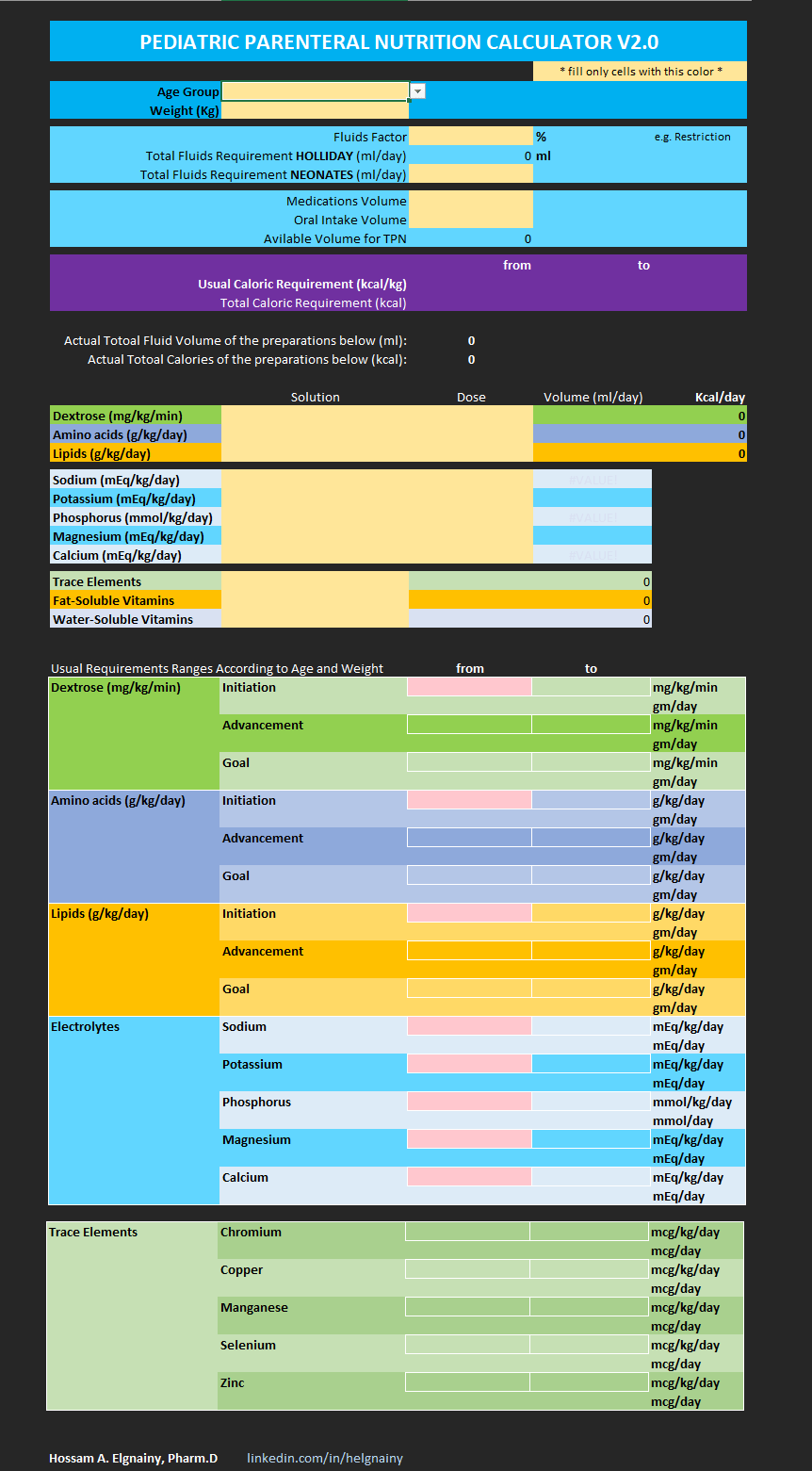 Ideal for pediatricians, clinical dietitians, pharmacists, and neonatal specialists, this calculator empowers professionals to deliver safer, more efficient care. Whether managing acute critical illness or chronic metabolic disorders, the tool provides a user-friendly interface to optimize nutritional support, enhance patient outcomes, and uphold the highest standards of pediatric practice. Discover how innovation meets precision in safeguarding the health of our youngest patients.